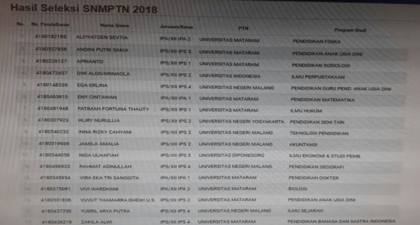 Selamat kepada siswa-siswi SMAN 1 Taliwang yang telah berhasil lulus SNMPTN tahun 2018